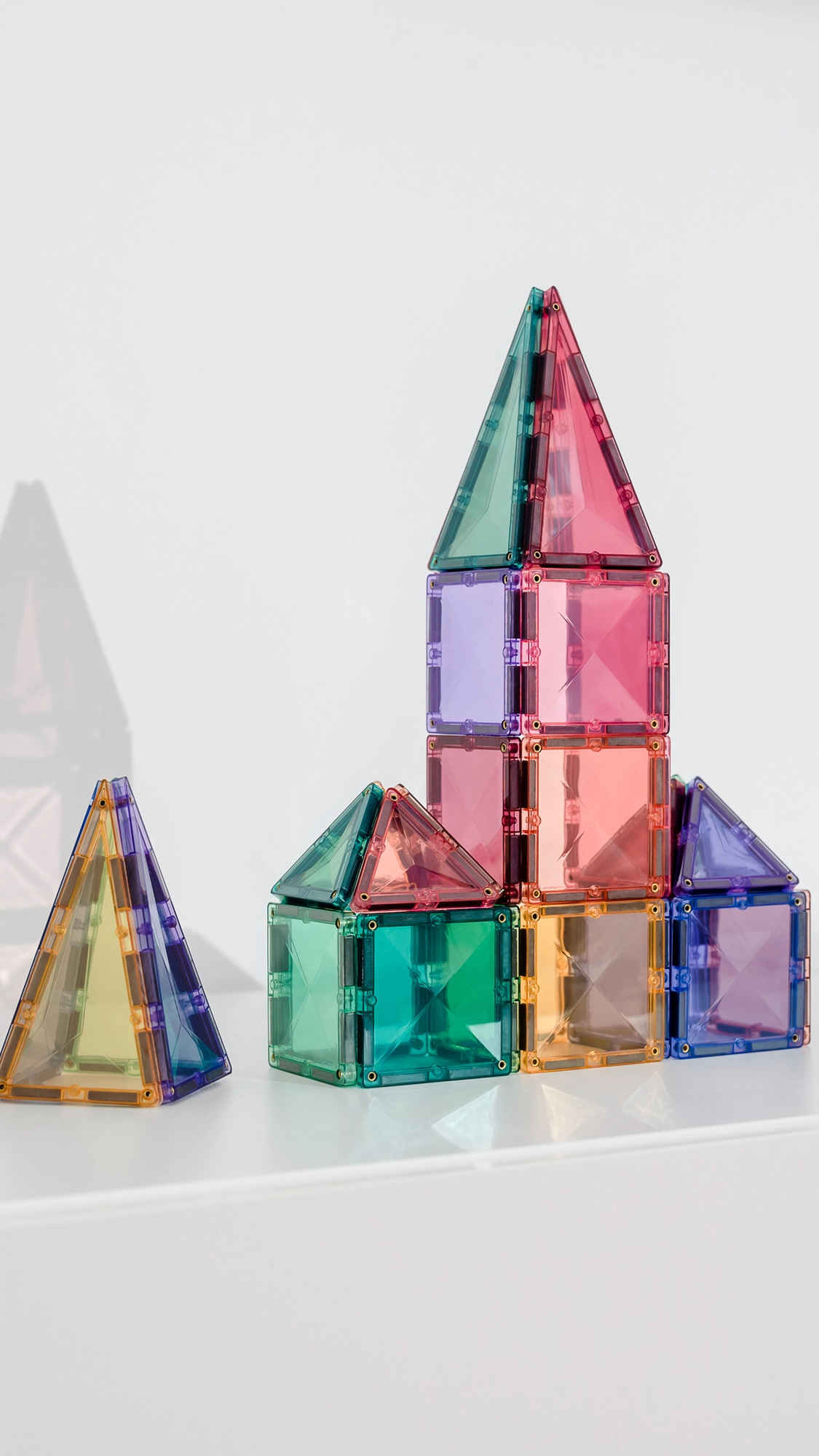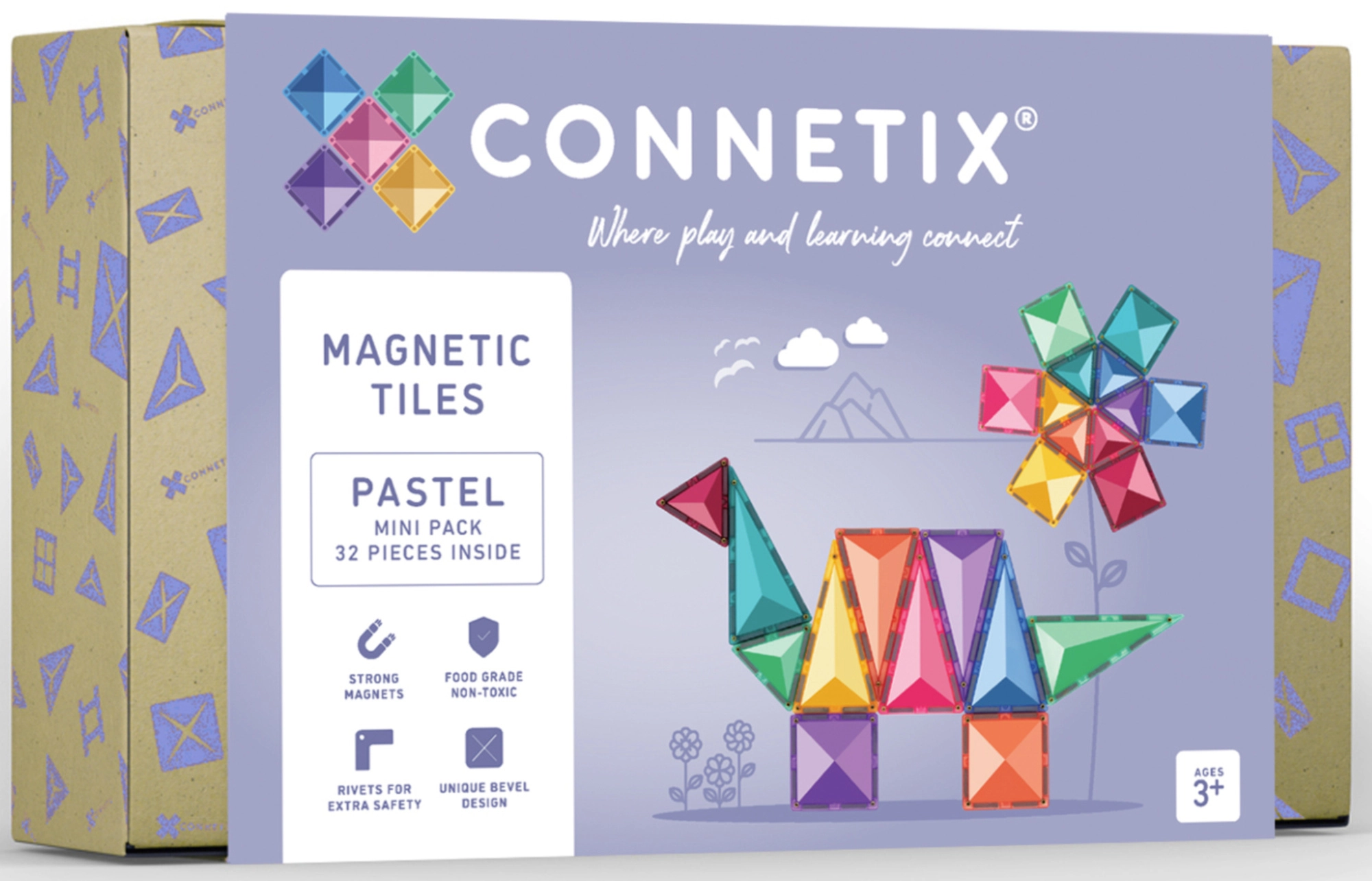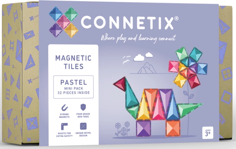 De Pastel Mini Pack van CONNETIX biedt de ideale start in magnetisch bouwen. Kinderen verbinden de transparante tegels moeiteloos en creëren kastelen, bruggen en raketten, terwijl ze spelenderwijs leren over geometrie, magnetisme en balans. Hoogwaardig ABS-plastic zonder BPA en ftalaten en stevige, geklonken verbindingen zorgen voor een lange levensduur, zelfs bij intensief gebruik.