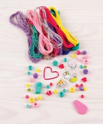 7 gekleurde borduurgarens, een metallic zilverkleurig koord, 3 gekleurde koorden, kralen, bedels en duidelijke instructies – je kunt meteen beginnen met creëren.