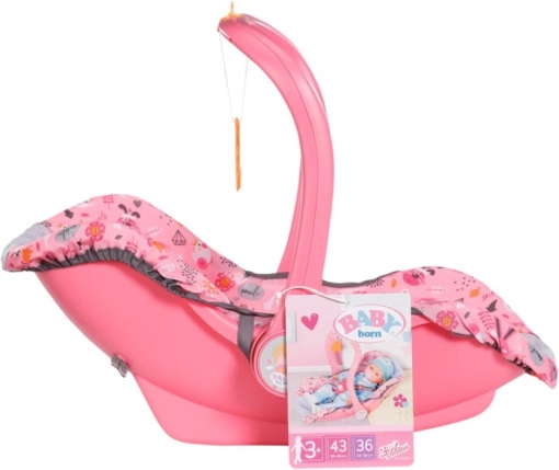 Deze stijlvolle roze autostoel en draagstoel voor BABY born poppen is ontworpen voor kinderen vanaf 3 jaar. Dankzij de stevige kunststof kuip, de zachte bekleding en de veiligheidsriem biedt hij de pop comfort en ondersteuning tijdens het dragen en uitrusten. De draaibare beugel maakt snel wisselen mogelijk tussen draag-, zit- en wiegstand.