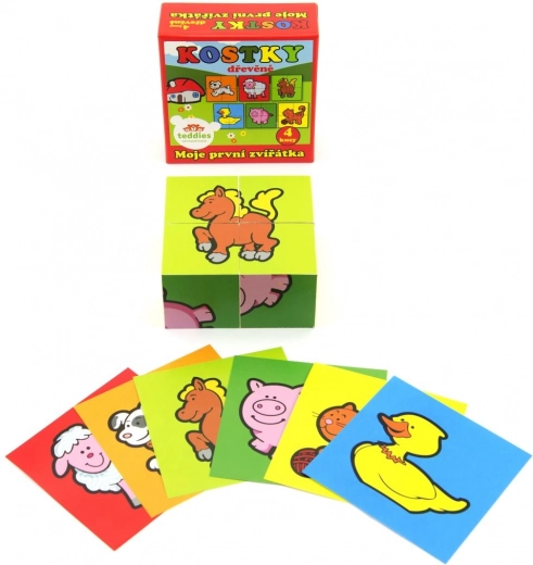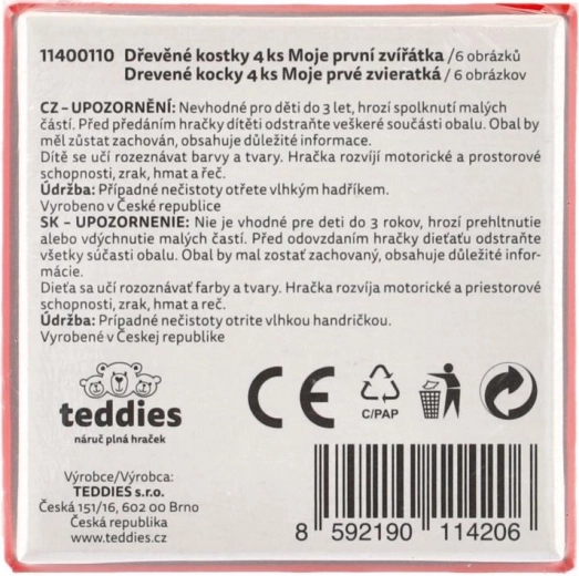 De houten blokpuzzel Mijn eerste diertjes van het merk TEDDIES is een uitstekende keuze voor de eerste puzzels. Vier hoogwaardige houten blokken in een praktische kartonnen doos maken het mogelijk om zes verschillende motieven van huisdieren te leggen. Kinderen hebben plezier met het leggen van de afbeeldingen en met het bouwen van torens, kastelen of hokjes voor de diertjes.