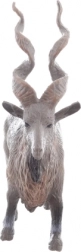 Het beeldje biedt gedetailleerde modellering van de vacht en de iconische spiraalvormige horens, waardoor het oogt als een echt dier uit het bergland.