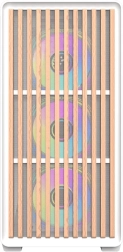 Houten lamellen op het frontpaneel worden aangevuld met een zijpaneel van gehard glas dat RGB-componenten accentueert en je build een modern uiterlijk geeft.