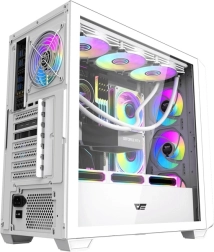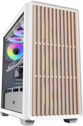 De Darkflash DS900WD combineert een moderne minimalistische look met praktische details. Houten lamellen aan de voorzijde worden aangevuld met gehard glas voor een perfect zicht op de componenten, terwijl het stalen chassis van 0,5 mm SPCC voor duurzaamheid zorgt. Het chassis ondersteunt moederborden ATX, M-ATX en ITX, heeft 7 PCI-E-slots en voldoende ruimte voor nette kabelgeleiding en efficiënte koeling.