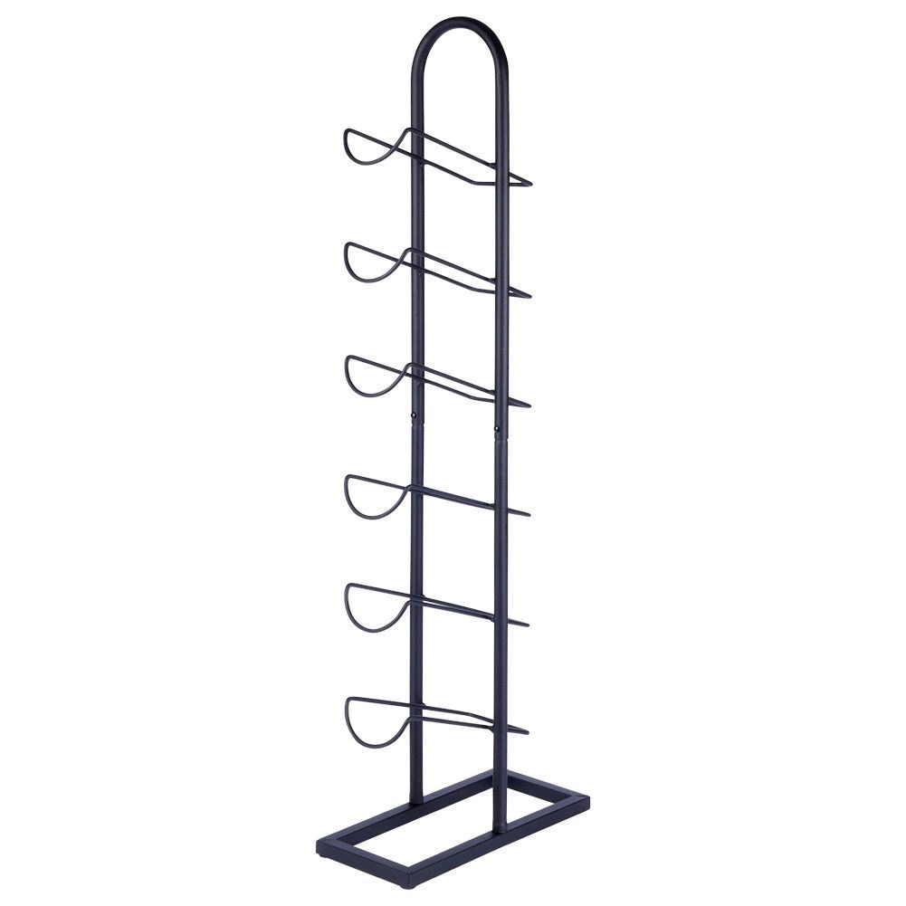 Dit vrijstaande wijnrek combineert een minimalistisch design met praktische functionaliteit. De duurzame metalen constructie met matzwarte afwerking past in zowel moderne als klassieke interieurs en biedt veilige, overzichtelijke opslag voor tot zes flessen.