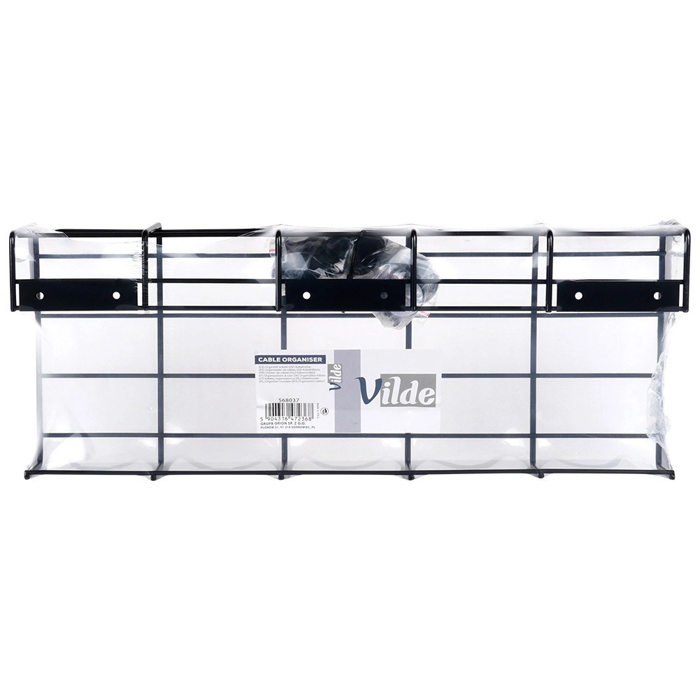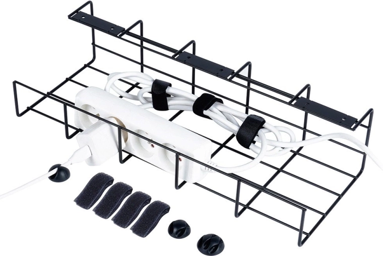 Dankzij de universele afmetingen 43 × 17 × 10 cm past hij gemakkelijk onder de meeste bureaus en planken. Het poedergecoate metaal in zwart is krasbestendig en past perfect bij moderne interieurs. De mand is ideaal voor het opbergen van stekkerdozen, voedingen en overtollige kabels zonder draaien of in de knoop raken.