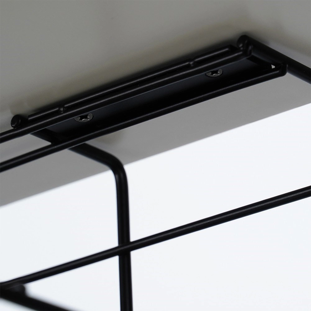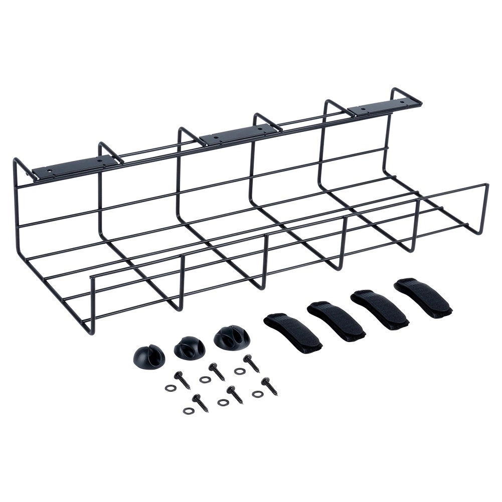 De onder-bureau kabelmand houdt bekabeling uit het zicht, van de vloer en buiten bereik van kinderen of huisdieren. De open draadconstructie zorgt voor vrije luchtcirculatie voor adapters en snelle toegang bij het toevoegen of vervangen van apparatuur.