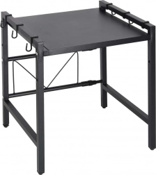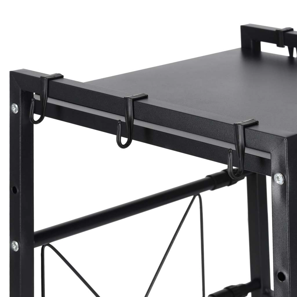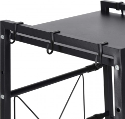 In de verpakking zit alles voor een snelle montage, inclusief 6 haken voor theedoeken of keukengerei en verstelbare voetjes voor stabiliteit. In ingeschoven stand heeft de plank een draagvermogen tot 30 kg, wat betrouwbare ondersteuning biedt voor kleine apparaten en zwaarder servies.