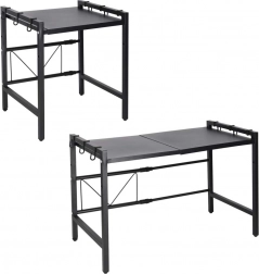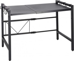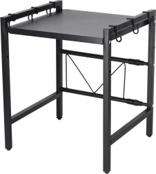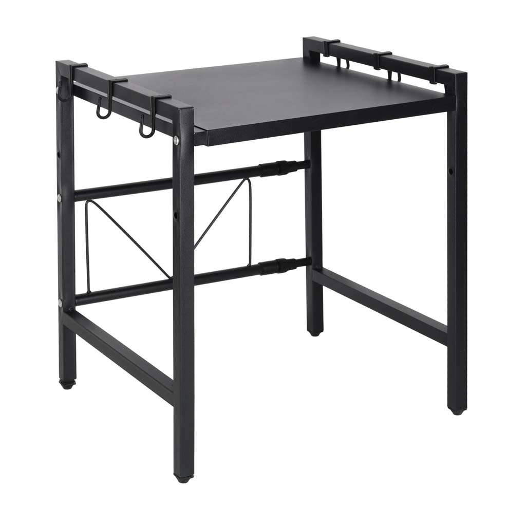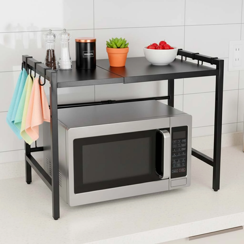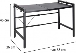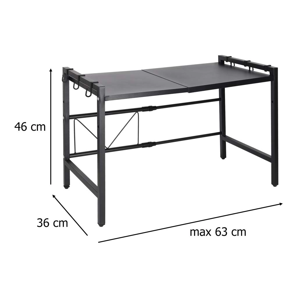 Breng orde in de keuken en benut de ruimte boven de magnetron optimaal. Deze metalen plank met industriële uitstraling biedt een uitschuifbare breedte van 38–63 cm en verstelbare plankhoogtes (34 of 43 cm), zodat je hem eenvoudig aanpast aan apparaten en servies. Het poedergecoate staal is krassen- en vochtbestendig, ideaal voor intensief gebruik.