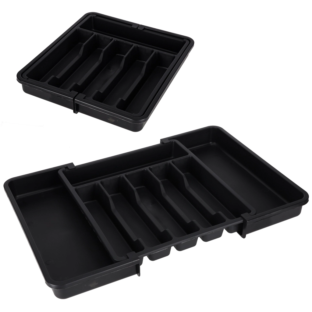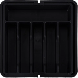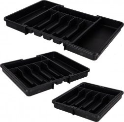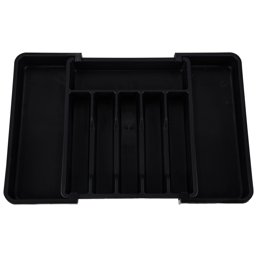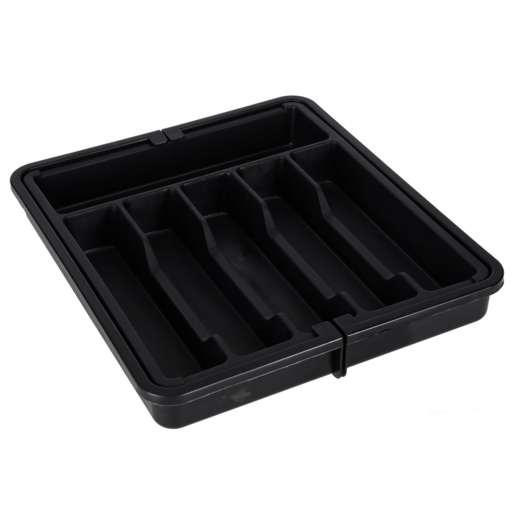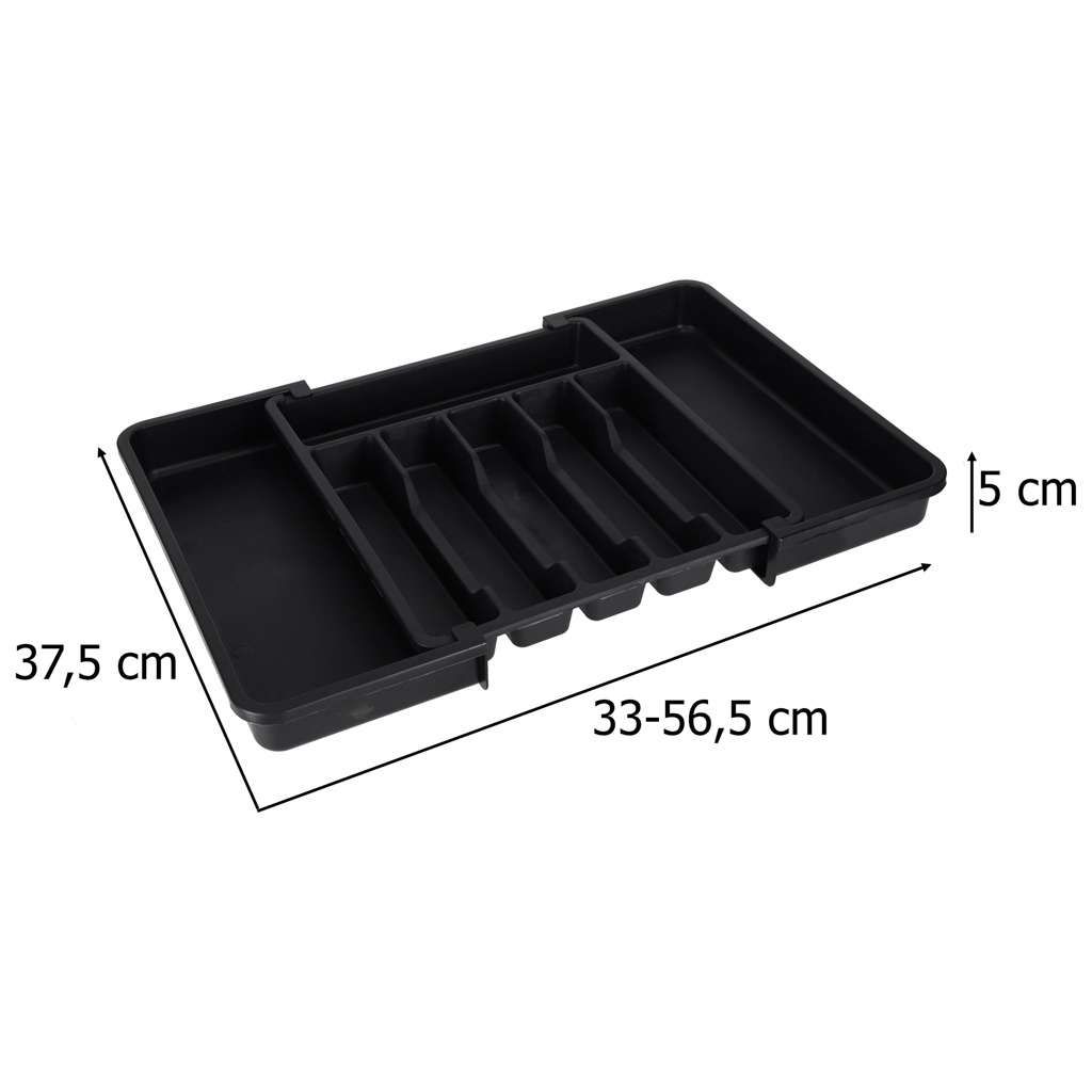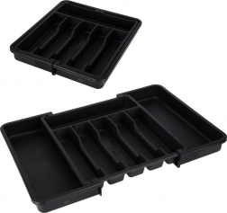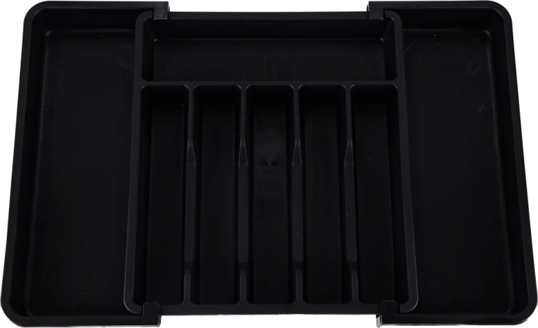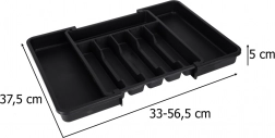 De moderne, modulaire inleg voor keukenlades helpt de beschikbare ruimte maximaal te benutten. De uitschuifbare constructie maakt een exacte breedte-instelling mogelijk, zodat de organizer perfect past in zowel smalle als brede lades. De elegante zwarte uitvoering en gladde oppervlakken zijn eenvoudig te onderhouden en geven de keuken een uniforme uitstraling.