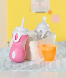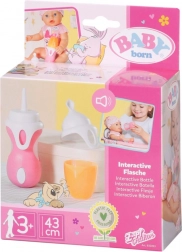 De interactieve fles en lepel voor BABY Born poppen zijn de perfecte aanvulling voor een realistisch spel. Deze set bevat een fles met twee opzetstukken - één voor drinken met geluidseffect en een andere met een lepel voor het voeren van pap. Druk eenvoudig de pap uit door de opening aan de onderkant en de fles is klaar voor gebruik.