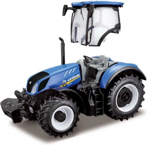 Duik in de wereld van boerderijmachines met het tractor model New Holland T7.270. Deze authentieke replica is ontworpen met oog voor detail, van de robuuste zwarte banden tot de witte velgen en de cabine opbouw.