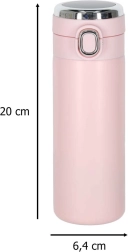 Zoek je een betrouwbare reisbeker voor werk, school of onderweg? Deze thermosbeker van 420 ml combineert modern design, praktisch gebruik en veilig drinken met één hand dankzij de drukknopopening. Het LED-display in het deksel toont de actuele temperatuur en de gekleurde druppel laat direct zien of het tijd is voor een slok.