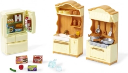 Creëer het gezellige hart van het poppenhuis met de set landelijke keuken met koelkast van Sylvanian Families. Dit gedetailleerde meubel biedt een werkblad, een fornuis met oven, een ruime koelkast met vijf deurtjes en diverse keukentoebehoren. Perfect voor creatief spel en het ontwikkelen van fijne motoriek bij kinderen vanaf 3 jaar.