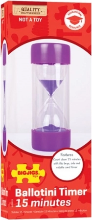 Grote zandloper Bigjigs Toys zijn perfect voor het meten van de tijd voor activiteiten zoals studeren of opruimen. De binnentank voor zand is gemaakt van glas en wordt beschermd door een stevige plastic behuizing. Voldoet aan de actuele Europese veiligheidsnormen.