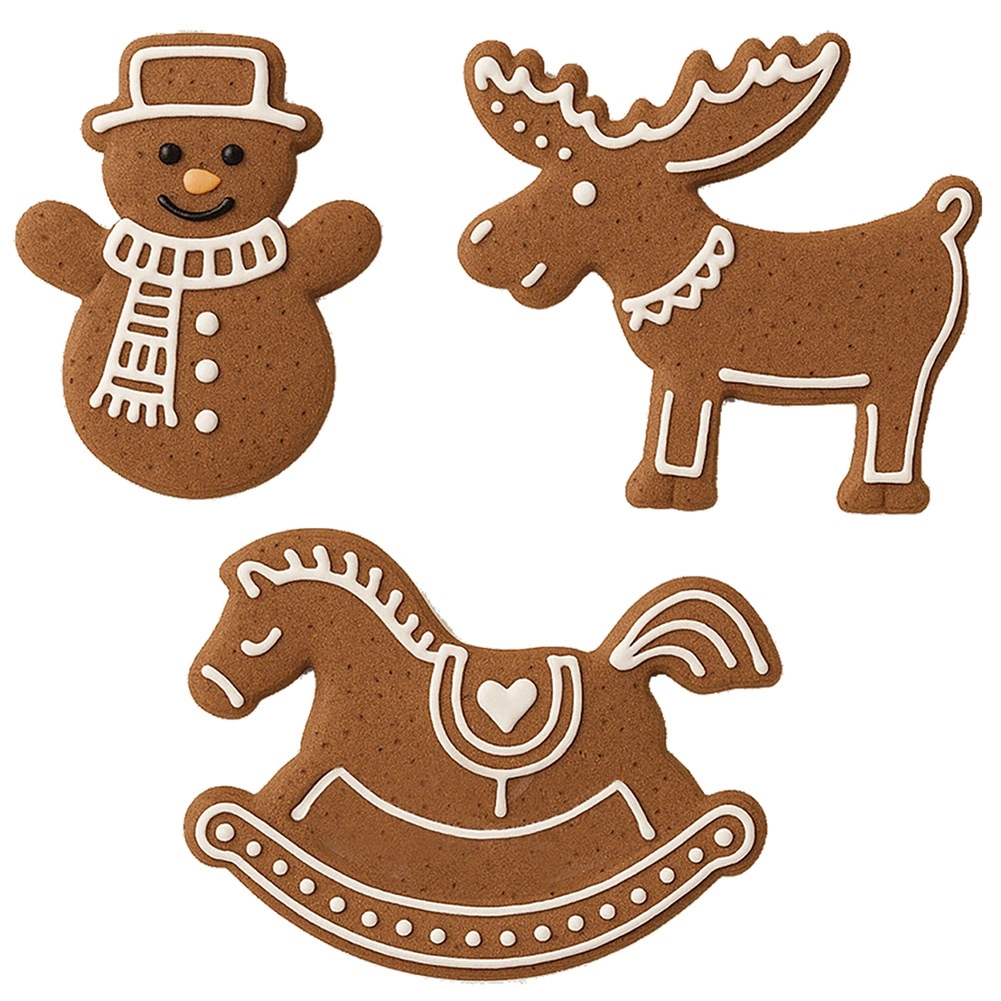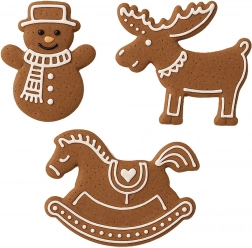 Sneeuwpop, hobbelpaard en rendier dekken de meeste populaire kerstmotieven. Ideaal voor peperkoek en zandkoekjes.