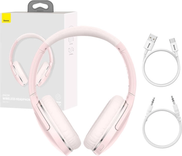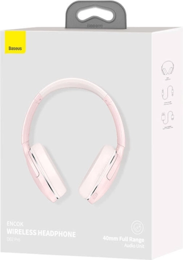 Stijlvolle draadloze koptelefoon Baseus Encok D02 Pro in het roze biedt helder stereogeluid, een lange batterijduur tot 40 uur en Bluetooth 5.0 voor een stabiele verbinding. Dankzij het inklapbare ontwerp, de zachte oorkussens en de mogelijkheid om via een 3,5mm-kabel te luisteren is hij ideaal voor onderweg, op het werk en tijdens het studeren.