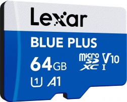 De Lexar microSDXC Blue Plus 64 GB is ontworpen voor snel vastleggen, afspelen en overzetten van multimedia. Biedt A1-prestaties voor soepelere app-werking en de klasse UHS-I U1 / V10 voor betrouwbare opname van Full HD-video. Leessnelheden tot 100 MB/s versnellen back-ups en overdrachten naar de computer.