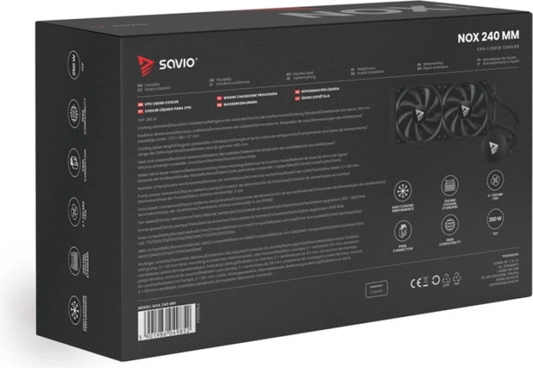 Krachtige CPU-waterkoeling NOX 240 mm voor gamers en veeleisende gebruikers zorgt voor stabiele temperaturen, stille werking en een modern design. De aluminium radiator, koperen basis van het blok, 2× 120mm PWM-ventilatoren en ondersteuning voor TDP tot 250 W leveren betrouwbare prestaties, zelfs onder hoge belasting.