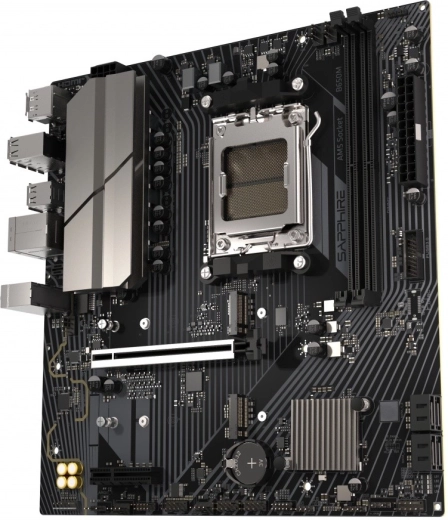 Compact mATX‑moederbord Sapphire B650M‑E voor AMD Ryzen‑processors met AM5‑socket biedt moderne uitrusting voor zowel gaming als veeleisende builds. Het brengt PCIe 5.0 voor M.2‑SSD, een grafische PCIe 4.0 x16‑slot, snelle DDR5 (Dual Channel, tot 7600 MHz OC) en stabiele voeding dankzij 6+2+1 VRM‑fasen met heatsinks. Inclusief effectieve koeling voor VRM, M.2 en chipset en overzichtelijke instellingen in Sapphire CORE BIOS.