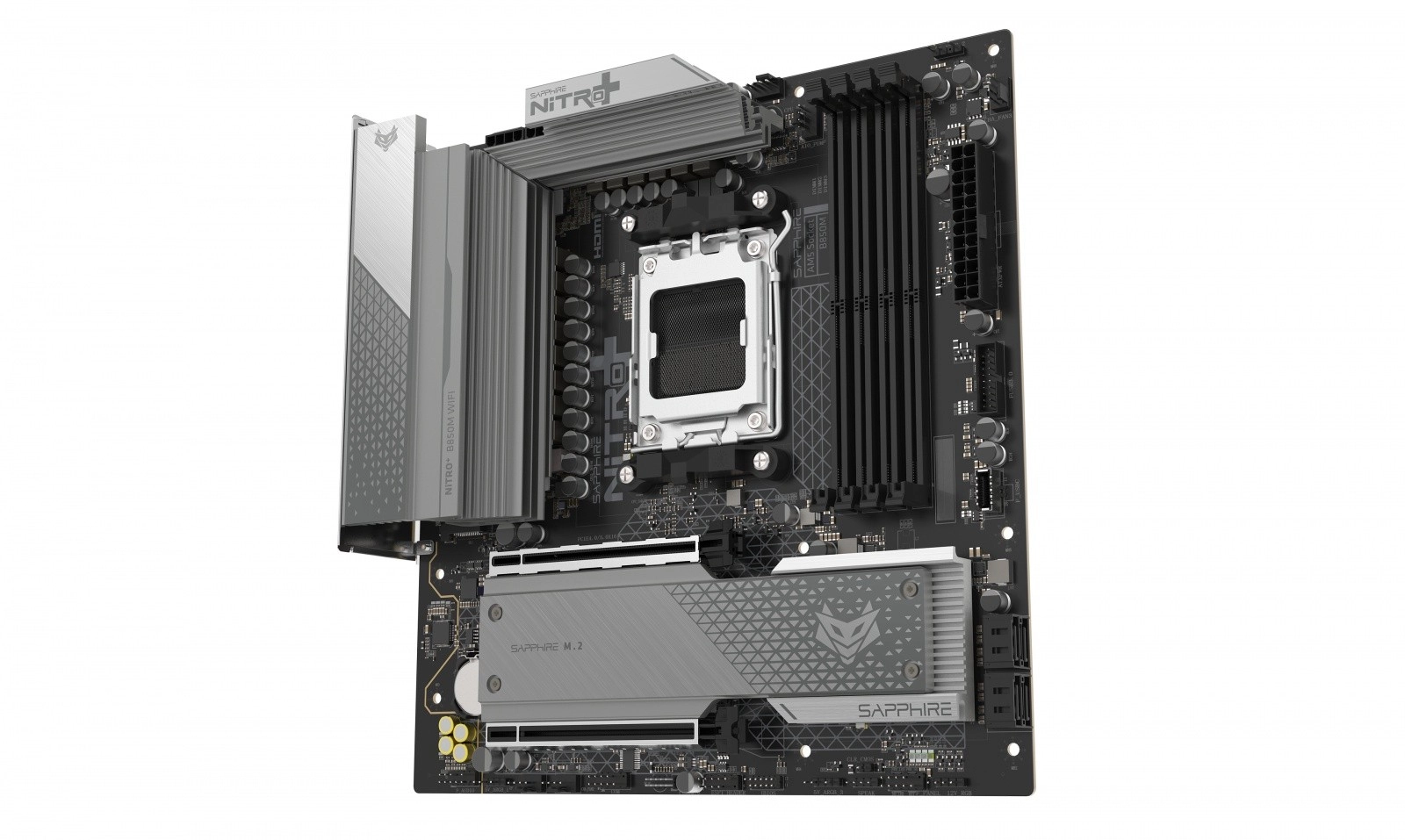 De SAPPHIRE NITRO+ B850M WIFI is een modern mATX-moederbord, klaar voor AMD Ryzen-processors op socket AM5. Dankzij het 12+2+1-fase voedingsontwerp (55 A per fase) en robuuste koellichamen voor VRM, M.2 en PCH levert het uitstekende stabiliteit en lage temperaturen bij langdurige belasting en overklokken. Ondersteuning voor dual-channel DDR5 met hoge overclocksnelheden zorgt voor een vlotte systeemrespons.