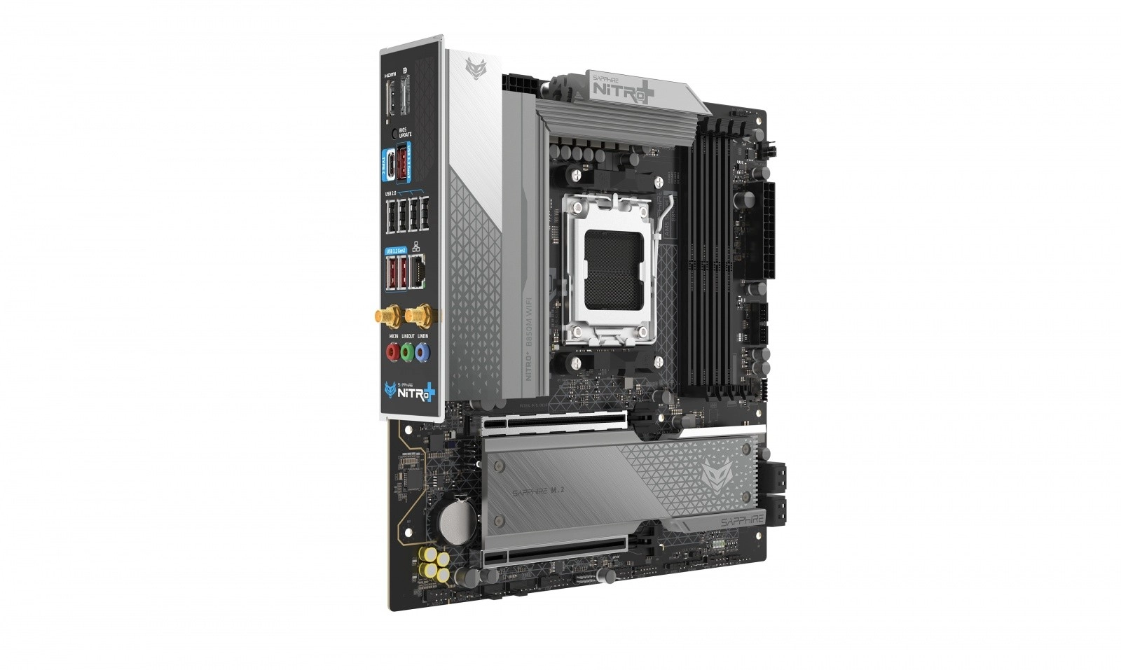 Het SAPPHIRE NITRO+ B850M WIFI moederbord voor AMD AM5 biedt stabiele voeding, geavanceerde koeling en moderne uitrusting voor compacte mATX-builds. Ondersteunt DDR5 met hoge kloksnelheden, PCIe 5.0 voor grafische kaart en SSD, geïntegreerde Wi‑Fi en een handige Debug LED voor eenvoudig troubleshooten.