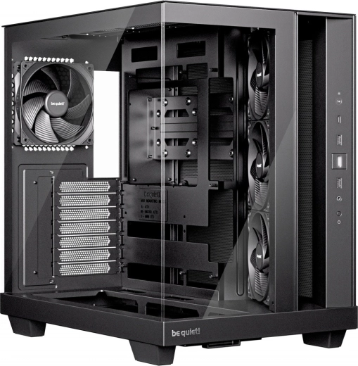 Af fabriek uitgerust met 4 Pure Wings 3 120 mm PWM-ventilatoren – zijdelingse exemplaren met omgekeerde bladen voor een strak uiterlijk, geoptimaliseerde bladen voor hoge doorstroming en lage turbulentie.