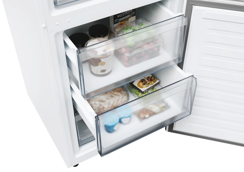 Drie ruime en transparante vrieslades zorgen voor snel overzicht en het eenvoudig opbergen van grotere verpakkingen zonder onnodig zoeken.