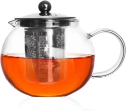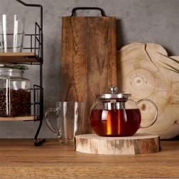Ontdek een elegante manier om van uw favoriete thee te genieten zonder blaadjes in het kopje. De pot van helder borosilicaatglas laat u de sterkte van de infusie controleren, terwijl het fijne roestvrijstalen filter de theeblaadjes veilig binnen houdt. Dankzij het volume van 800 ml bereidt u de ideale portie voor uzelf en uw gasten.