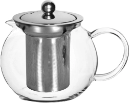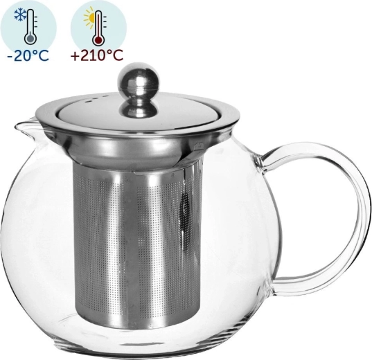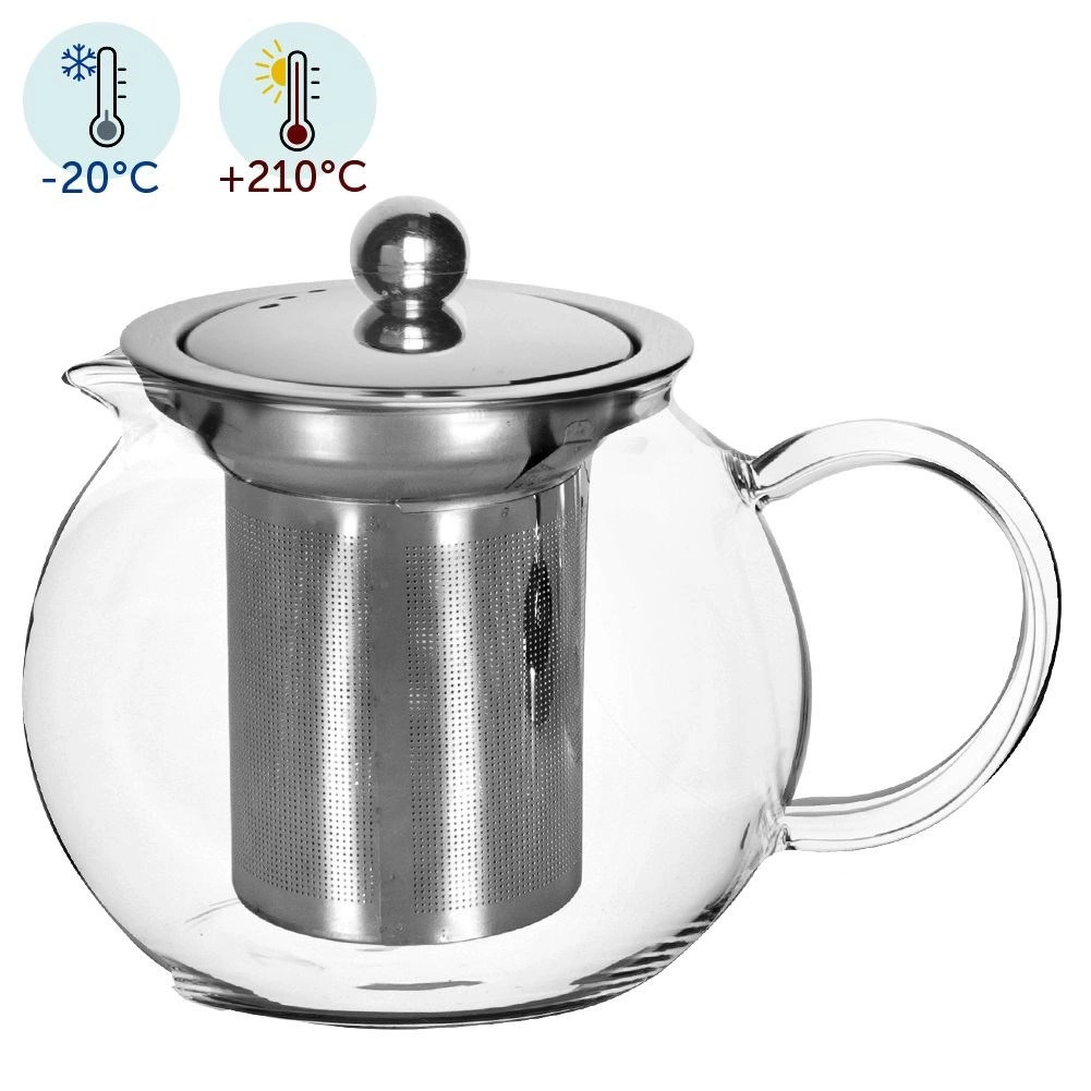 Praktische glazen theepot met roestvrijstalen infuser voor comfortabel trekken van losse thee en kruidenthee. Gemaakt van duurzaam borosilicaatglas dat temperaturen van -20 °C tot +210 °C verdraagt. Het uitneembare filter maakt eenvoudig schoonmaken mogelijk en gebruik als klassieke karaf. Ergonomisch handvat, preciese tuit en vaatwasserbestendig voor dagelijks gemak.