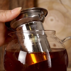 Het fijne roestvrijstalen filter houdt de theeblaadjes binnen en kan na het trekken eenvoudig worden verwijderd. De pot verandert zo in een klassieke drankkaraf.