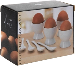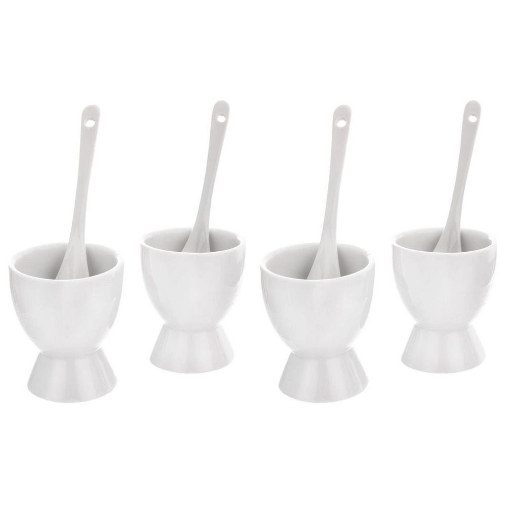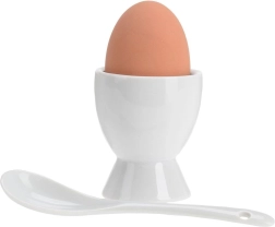 Geniet van het ontbijt met perfect stabiel serveren van eieren. De porseleinen eierhouders houden zowel zacht- als hardgekookte eieren stevig op hun plek, terwijl de meegeleverde lepeltjes voor maximaal eetcomfort zorgen. De eenvoudige witte uitvoering benadrukt de elegante uitstraling van de tafel en past moeiteloos in elke keuken.