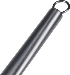 Volledig metalen uitvoering van roestvrij staal: stevig, hygiënisch en vaatwasserbestendig. Het oogje maakt praktisch ophangen mogelijk.