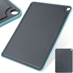 Universele keukensnijplank met sapproef, ideaal voor het snijden van brood, groenten, fruit en vlees. De duurzame, niet‑poreuze kunststof neemt geen geuren of kleuren op en dankzij de verhoogde rand met anti‑slip afwerking is snijden stabiel en veilig.