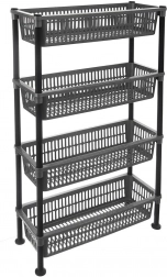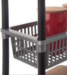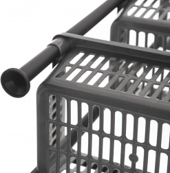 De kunststof constructie is vochtbestendig, gemakkelijk schoon te maken en de mandjes kunnen voor compacte opslag in elkaar worden geschoven.