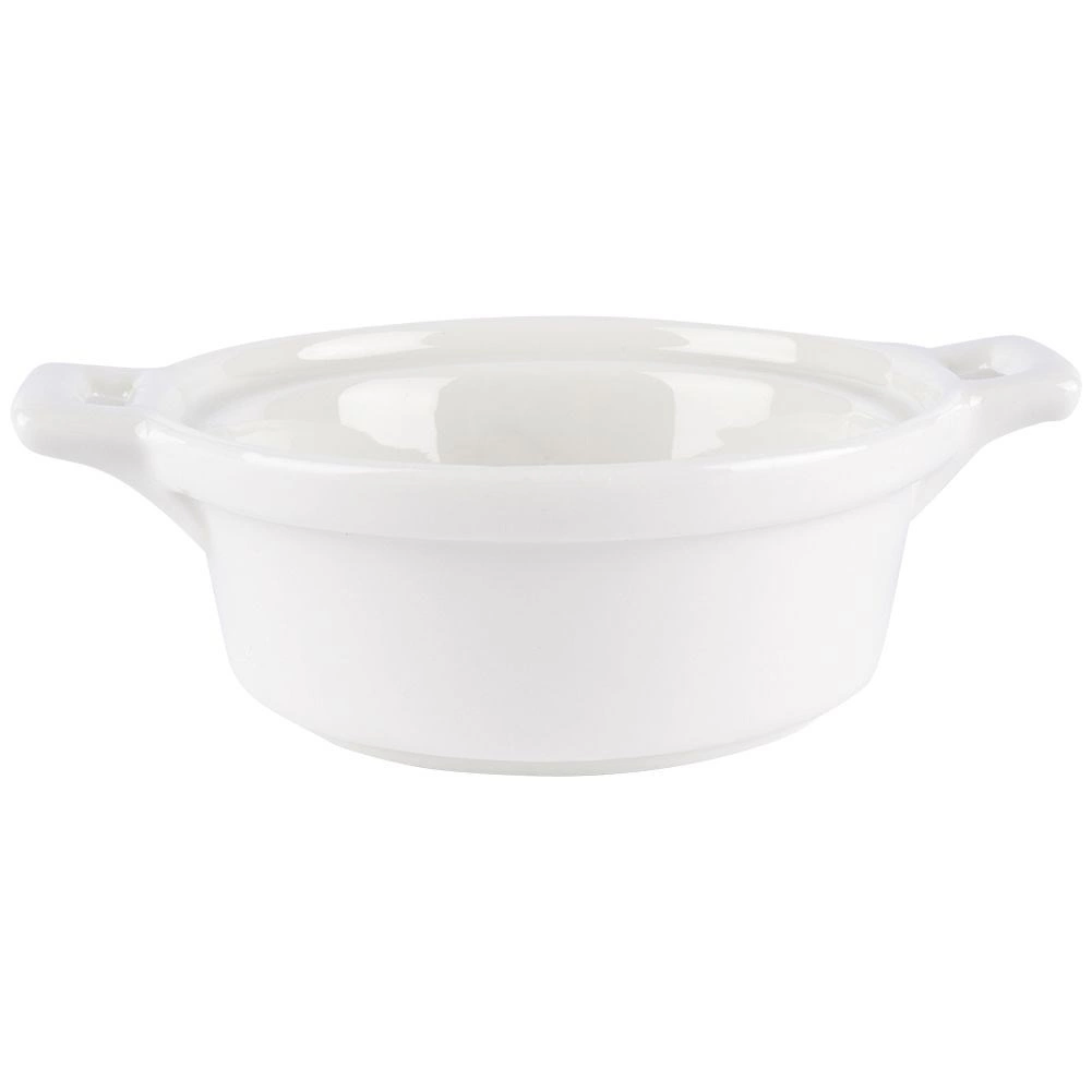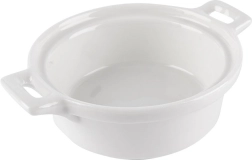 Praktische set van drie witte porseleinen cocottes met een inhoud van 130 ml, ideaal voor individuele porties desserts en hartige gerechten. Elk schaaltje heeft geïntegreerde handgrepen voor veilig dragen en dankzij de hoogwaardige glazuur zijn ze gemakkelijk schoon te maken. Geschikt voor de oven tot 230 °C, de vaatwasser en de magnetron. Perfect voor crème brûlée, soufflé, gegratineerde gerechten en het serveren van sauzen, dips en snacks.
