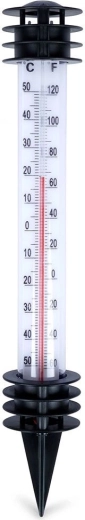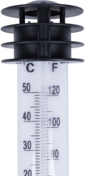 Deze insteek-buitenthermometer laat u snel de actuele temperatuur bepalen in de tuin, op het balkon of bij de bloembedden. De dubbele schaal in °C (-50 tot +50) en °F (-60 tot +120) is gemakkelijk af te lezen dankzij de contrasterende witte achtergrond en de rode kolom. Beschermende lamellen en een afdakje helpen de meetnauwkeurigheid te verbeteren door direct zonlicht te beperken.