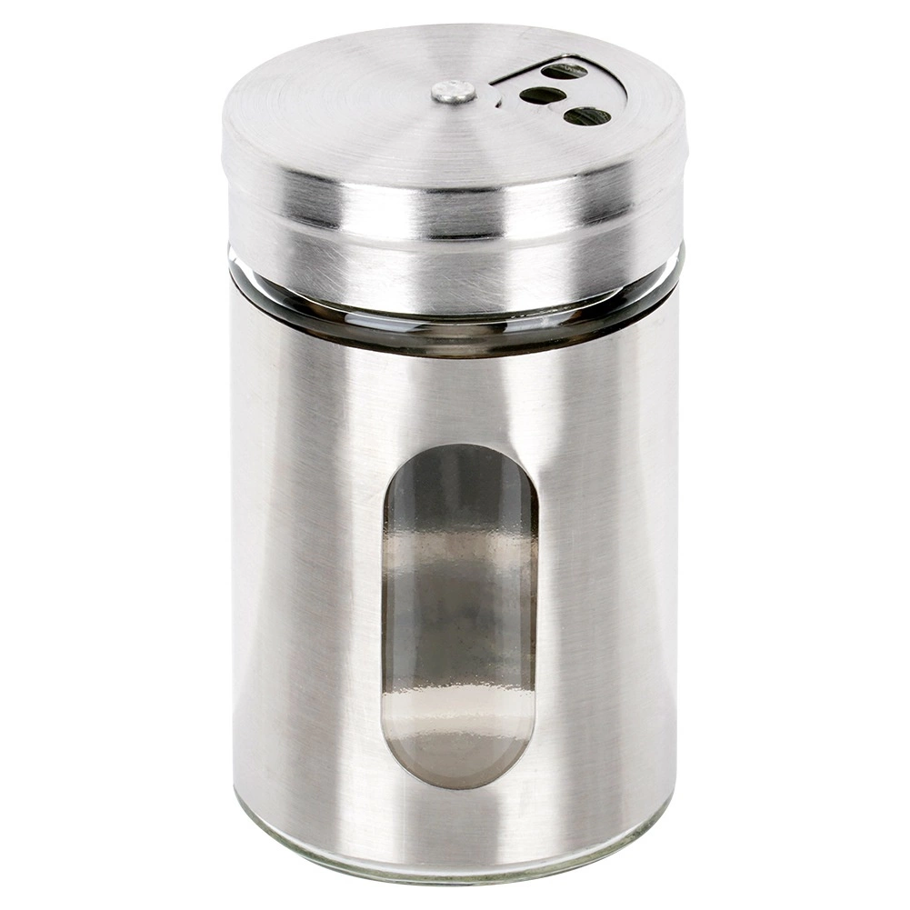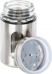 Universeel kruidenpotje van stevig glas met een roestvrijstalen mantel en deksel, ideaal voor kruiden, suiker, toppings en kruidenmixen. Het draaideksel biedt driestandenregeling – fijn strooien, middel doseren en snel uitschenken van grotere hoeveelheden. Dankzij het transparante kijkvenster heeft u altijd zicht op de inhoud en de hoeveelheid.