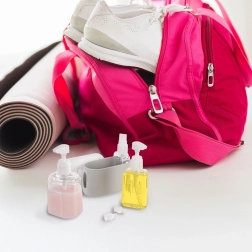 Lichte, transparante en navulbare flesjes voldoen aan de limieten voor vliegreizen en maken het inpakken van shampoos, gels en crèmes eenvoudig.