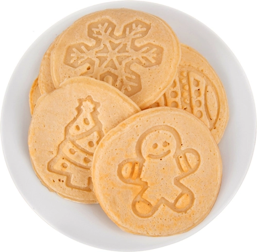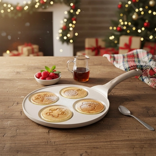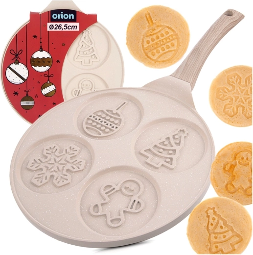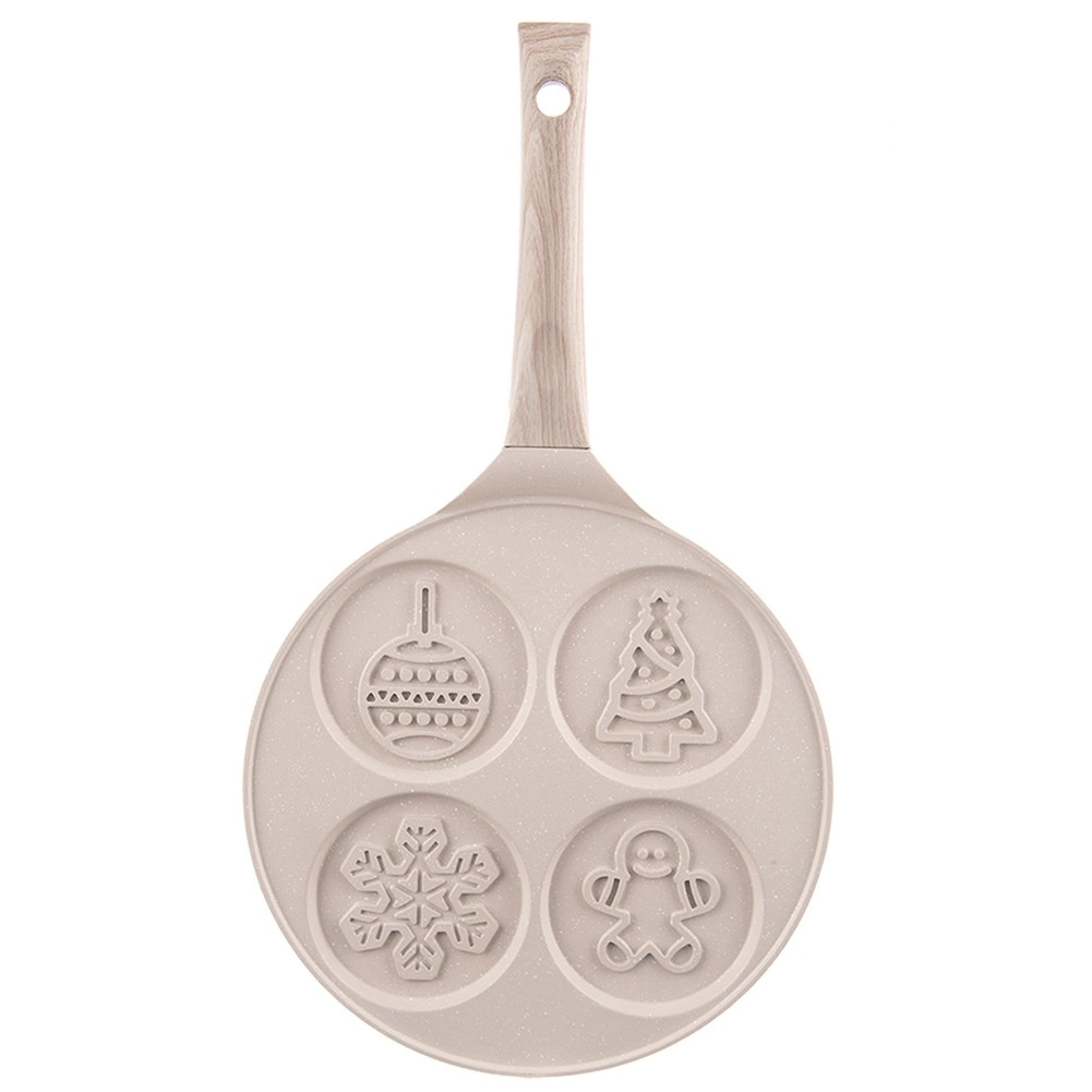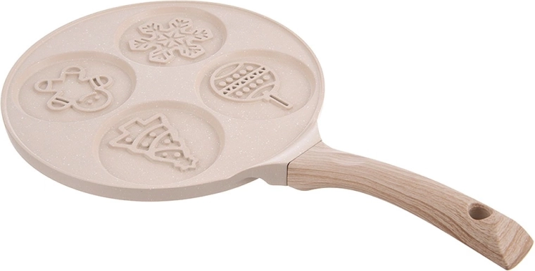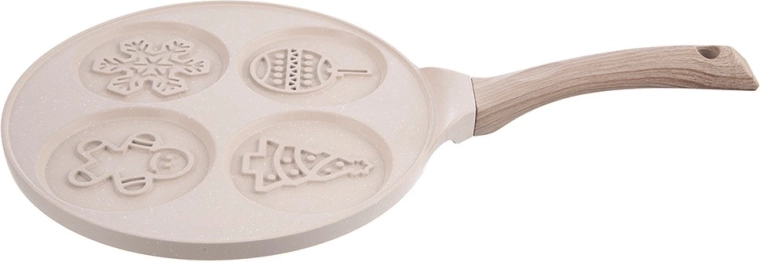 Geniet van eenvoudig en snel koken met een pan met een diameter van 26 cm en vier vormpjes (Ø 10 cm) die perfect ronde porties maken met reliëf van feestelijke motieven. Het anti-aanbak granieten oppervlak zorgt voor gelijkmatig bakken zonder aanbranden en met minimaal oliegebruik.