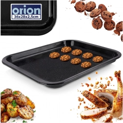 Dankzij de licht verhoogde rand is hij ideaal voor halfvloeibare mengsels, ovenschotels, vlees, groenten en pizza. Buitenafmetingen 36 × 28 × 2,5 cm (binnenmaat ca. 32 × 26 × 2 cm) passen in gangbare elektrische en gasovens.