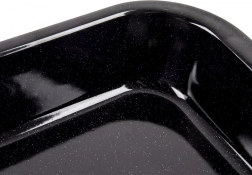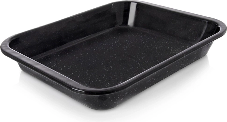 De veelzijdige, diepe bakplaat van hoogwaardig geëmailleerd staal is ideaal voor de dagelijkse bereiding van zowel zoete als hartige gerechten. Het gladde, glanzende oppervlak is hittebestendig en maakt het lossen van eten en het reinigen gemakkelijker. Dankzij de verhoogde rand blijven sappen, sauzen en vullingen veilig op hun plek zonder risico op morsen.