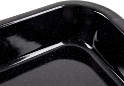De geëmailleerde bakplaat is een onmisbare hulp in elke keuken. Dankzij het duurzame staal met een gladde, glanzende geëmailleerde laag weerstaat hij hoge temperaturen, is hij krasbestendig en bovendien eenvoudig te reinigen. Perfect voor vlees, ovenschotels, groenten, aardappelen, pizza en ook voor taarten, koekjes en gebak.