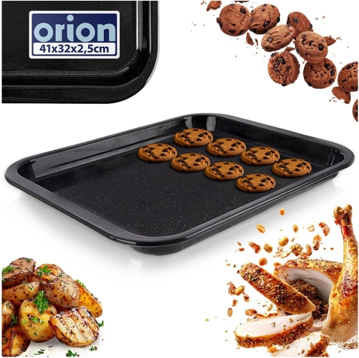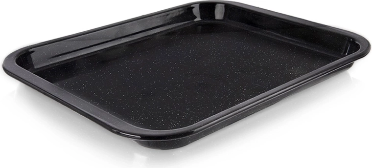 Praktische en duurzame geëmailleerde bakplaat met afmetingen 41 × 32 × 2,5 cm, ideaal voor dagelijks gebruik. Dankzij de slijtvaste geëmailleerde afwerking is hij beter bestand tegen hoge temperaturen, gemakkelijk schoon te maken en geschikt voor de vaatwasser. De hogere rand zorgt voor veilig bakken van zelfs halfvloeibare gerechten zonder knoeien.
