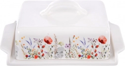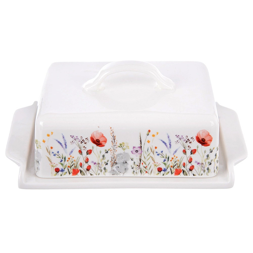De porseleinen botervloot met subtiel decor van klaprozen en weidebloemen is ontworpen voor het bewaren en serveren van boter. De deksel met praktische greep beschermt de boter tegen geurtjes uit de koelkast en helpt de versheid en volle smaak te behouden. De tijdloze vorm past in elke keuken en combineert met diverse serviezen.
