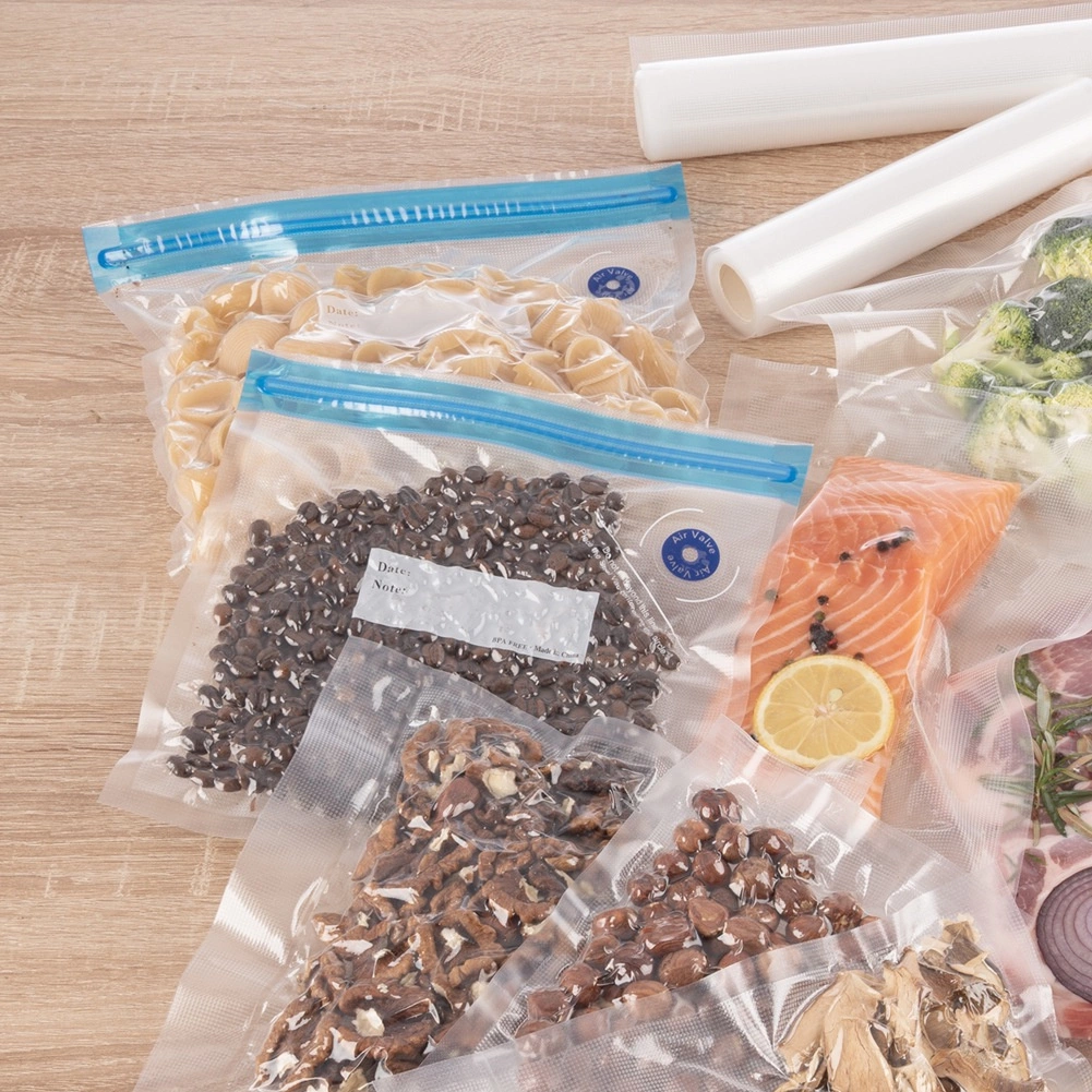 Houd je voedsel langer vers en netjes georganiseerd. Vacuümzakken met een praktische rits en een eenrichtingsventiel zorgen voor snel lucht afzuigen en een betrouwbare afsluiting. Eén zijde is glad, de andere heeft een gestructureerd oppervlak voor gelijkmatig vacuüm trekken.