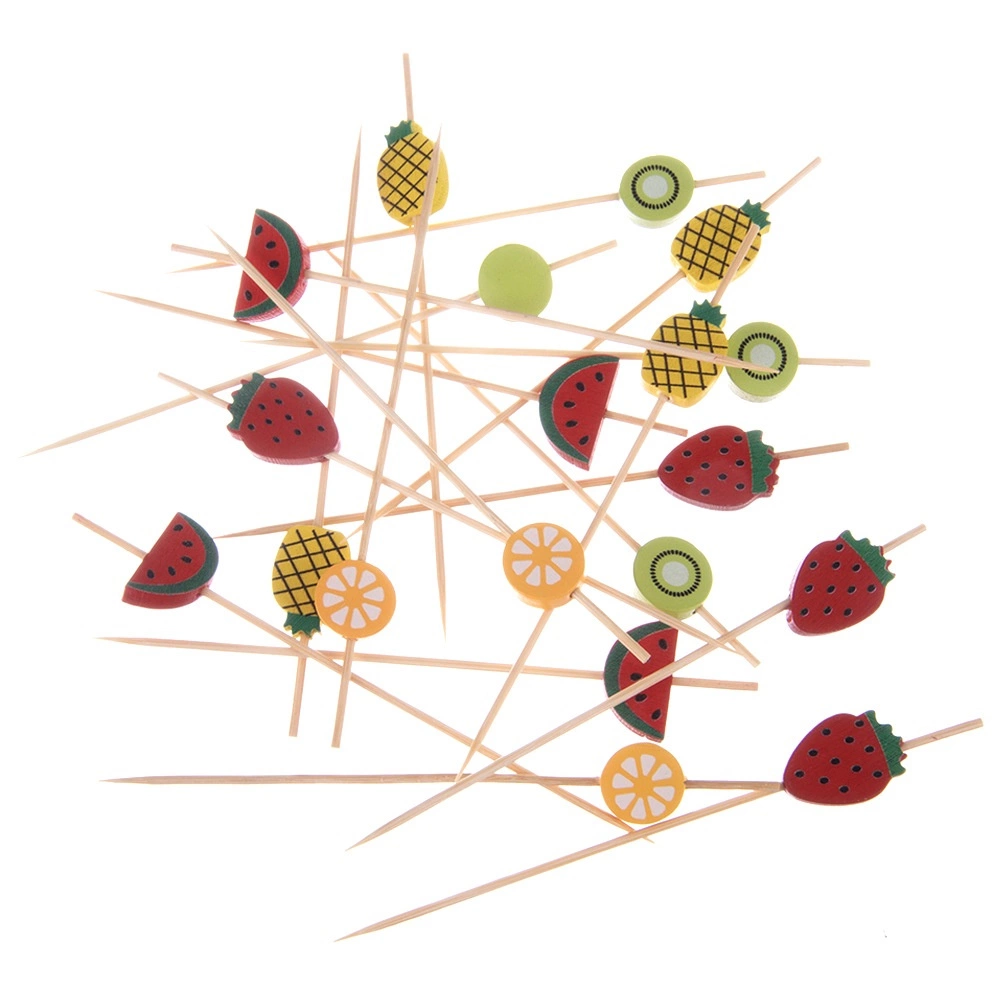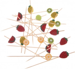 Elke prikker is voorzien van een unieke fruit-topper die je hapjes een speelse look geeft en de presentatie van canapés, kazen of fruit versterkt.