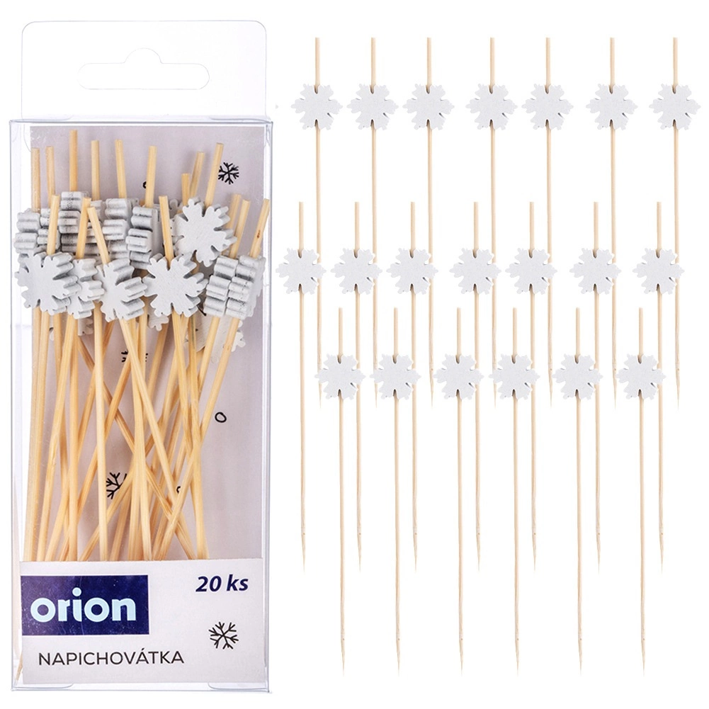 Geef je presentatie een elegante winterse touch. Elke prikker is versierd met een subtiele witte sneeuwvlok die de presentatie van koude schotels, planken en zoete hapjes versterkt. De natuurlijke materialen zijn veilig voor contact met voedsel en prettig licht.