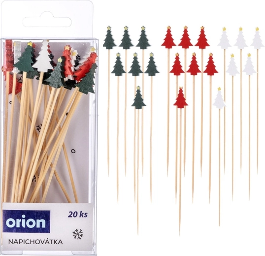Stijlvolle bamboe cocktailprikkers met een versiering in de vorm van een kerstboompje geven je hapjes een feestelijke touch. In de verpakking zitten 20 stuks van 13 cm, geschikt voor hapjes, fruit, kaas en muffins. Gemaakt van natuurlijk bamboe en esdoornhout die veilig zijn voor contact met voedsel.