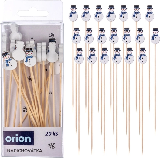 Stijlvolle bamboe prikkers met sneeuwpopmotief veranderen elke tafel in een feestelijke decoratie. In de verpakking zitten 20 stuks van 13 cm, ideaal voor canapés, fruit en desserts. Ze zijn gemaakt van veilige materialen die geschikt zijn voor contact met voedsel en maken elegant serveren tijdens feestjes en familiebijeenkomsten eenvoudig. Feestelijk design, natuurlijk bamboe en universeel gebruik voor zoete en hartige hapjes.