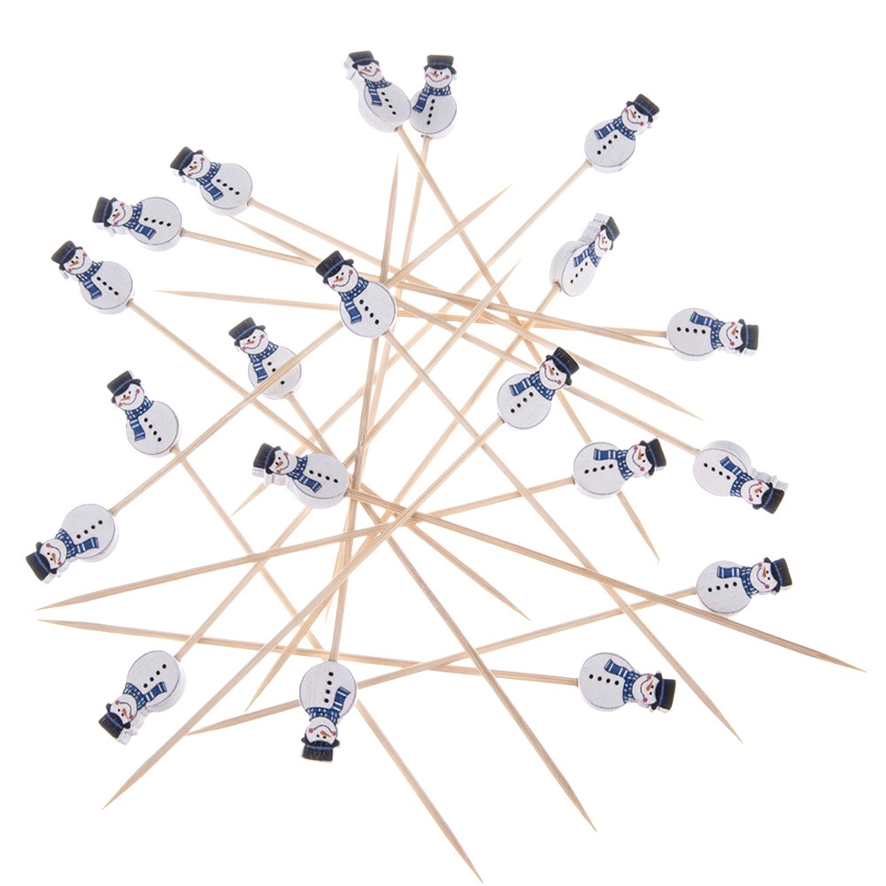 Natuurlijke bamboestokjes en houten decoraties zijn geschikt voor contact met voedsel. De sneeuwpop-toppers geven de tafel een vrolijke en opvallende look – ideaal voor thuisfeestjes, barbecues en familiefeesten.
